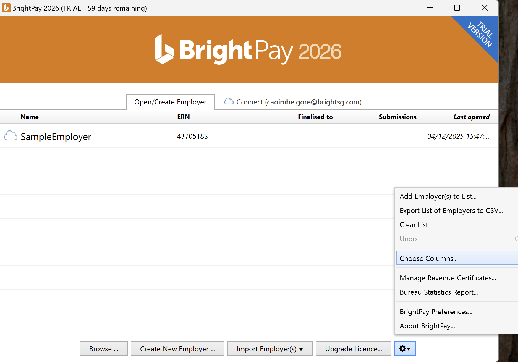 The columns on the BrightPay startup screen can be customised to suit your requirements.