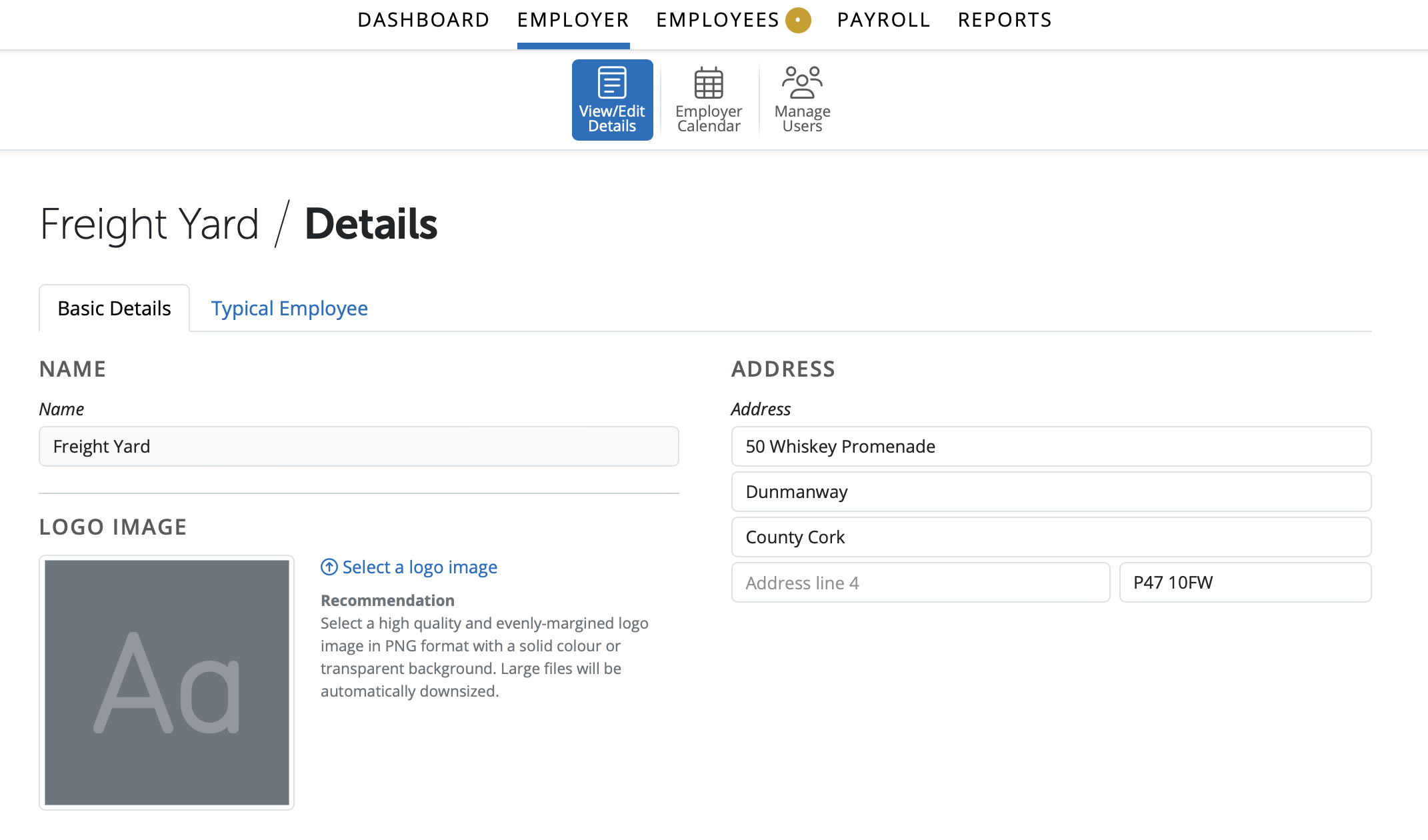 In the Employer section of the Client Portal a user can access basic Employer Information. This information can be edited (except the employer's name) and saved once the user has permission to do so. Details entered or any changes saved by a user will be updated in the Client Portal and in the employer in BrightPay.
