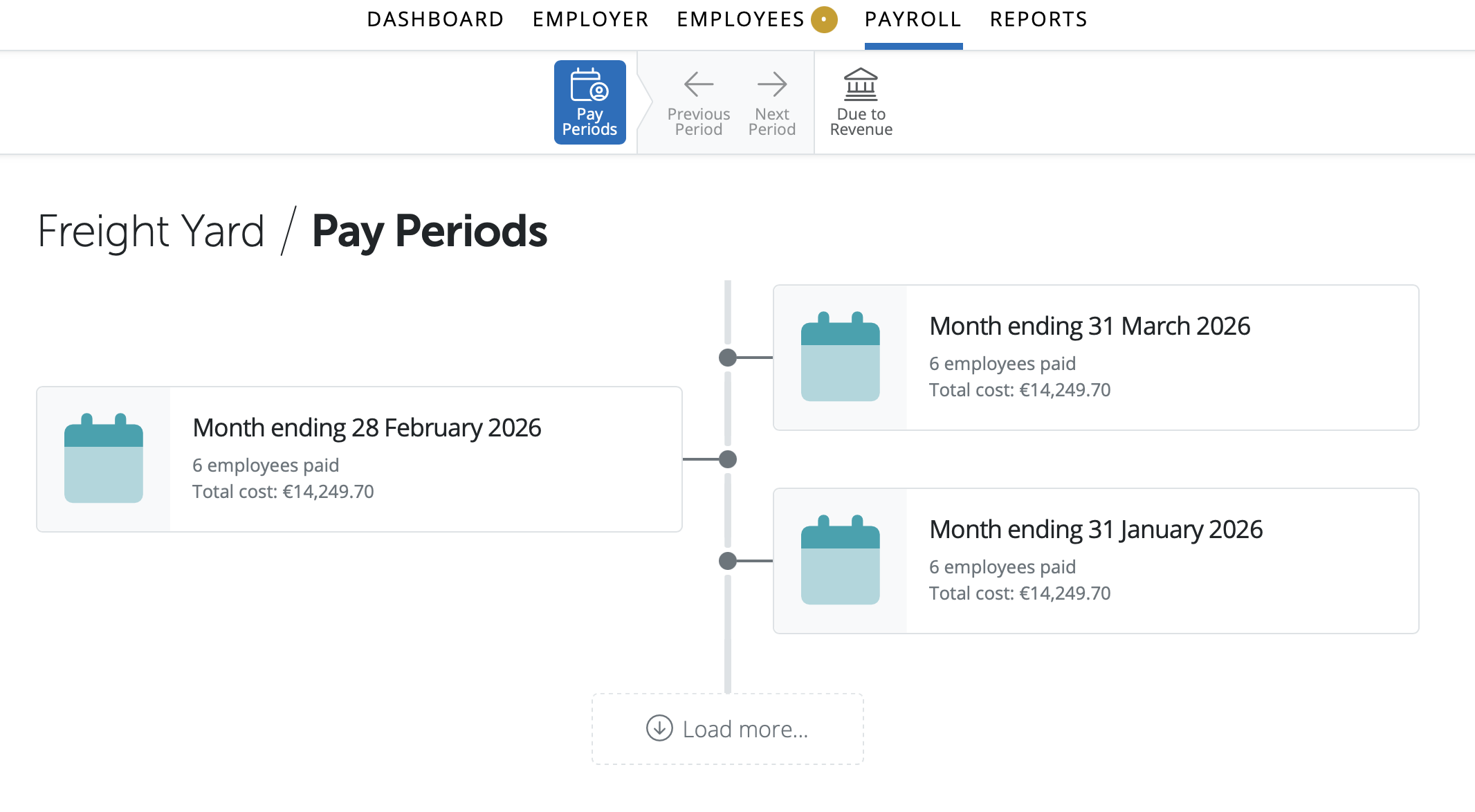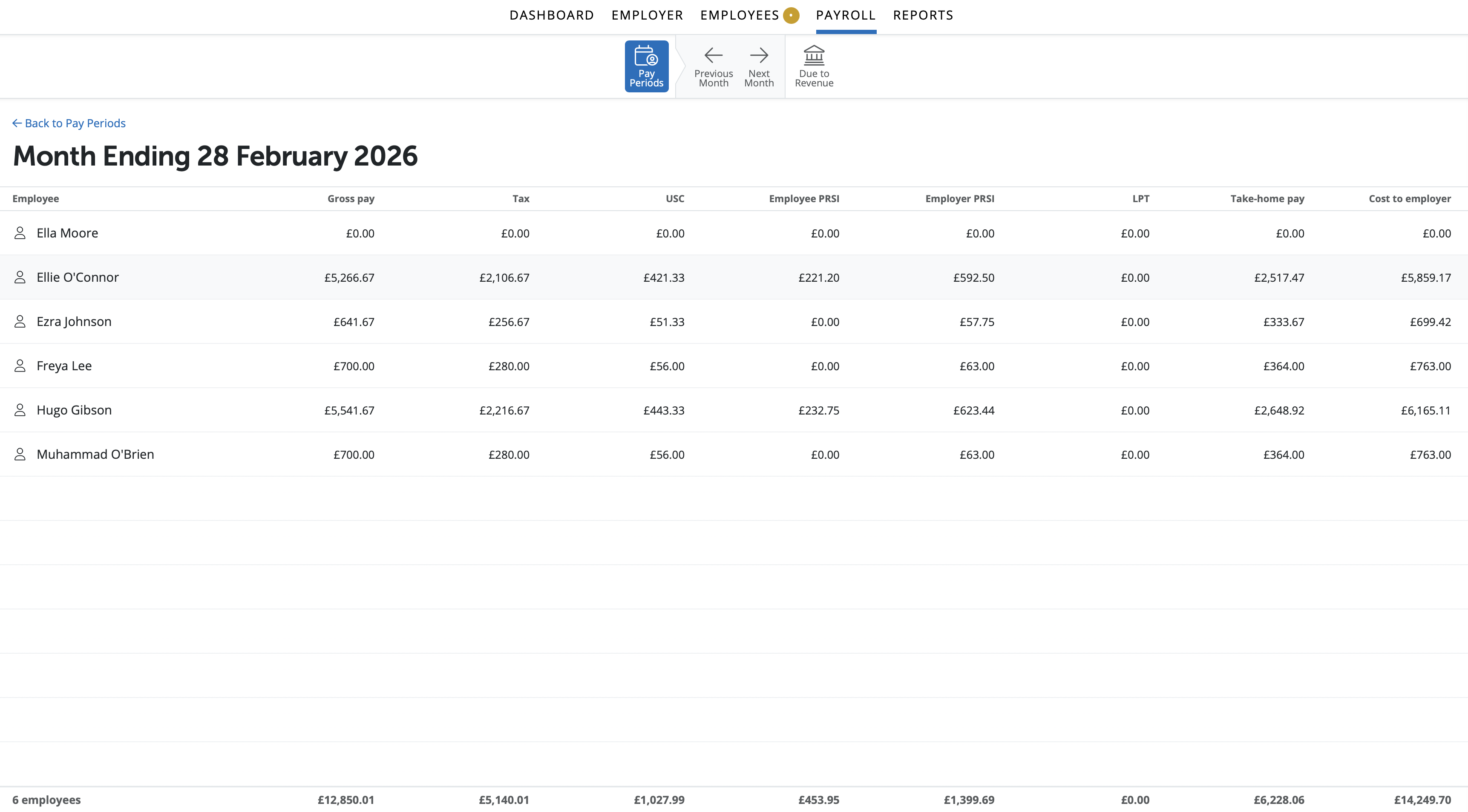All pay periods finalised in BrightPay will be accessible in the Pay Periods section - weekly, fortnightly, 4-weekly, monthly, quarterly and annual.