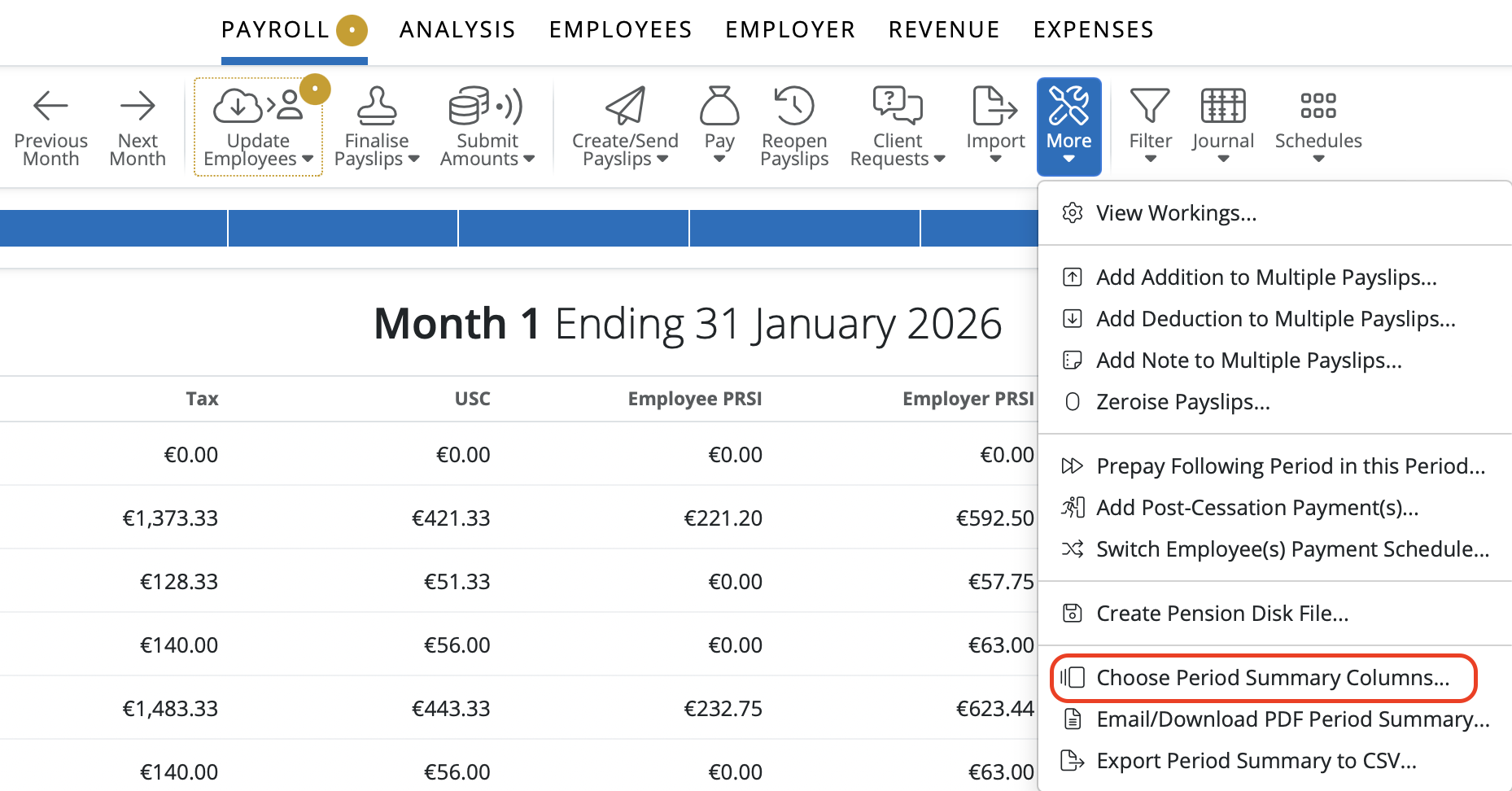 a) To choose which columns to display, simply click 'More' on the menu bar, followed by 'Choose Summary Columns...':